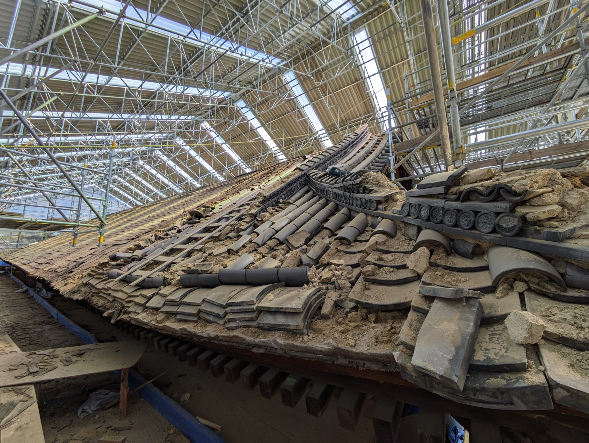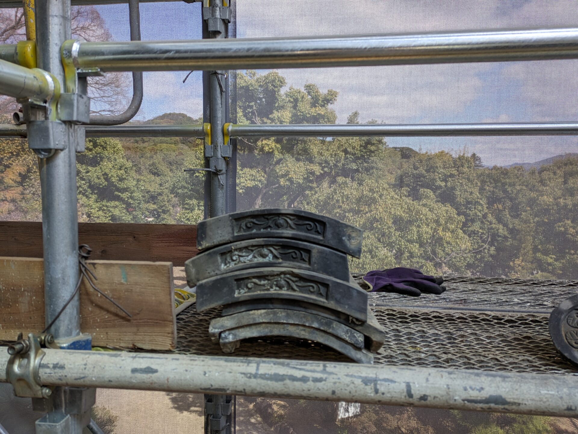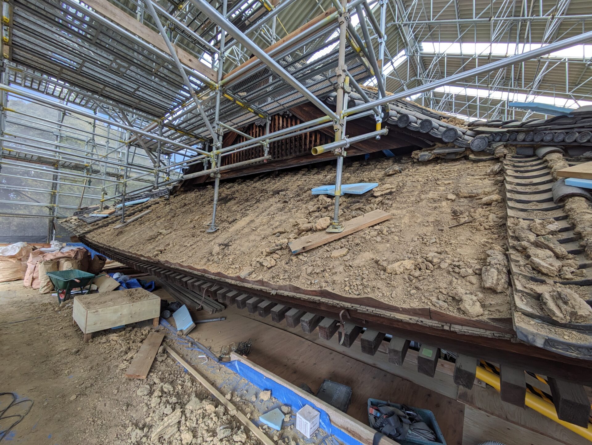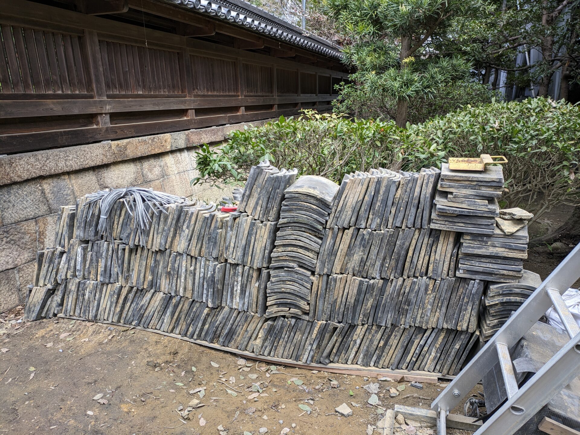 早いもので、3月10日に確認したところ、半分以上の瓦、葺き土の撤去が進んでいました。