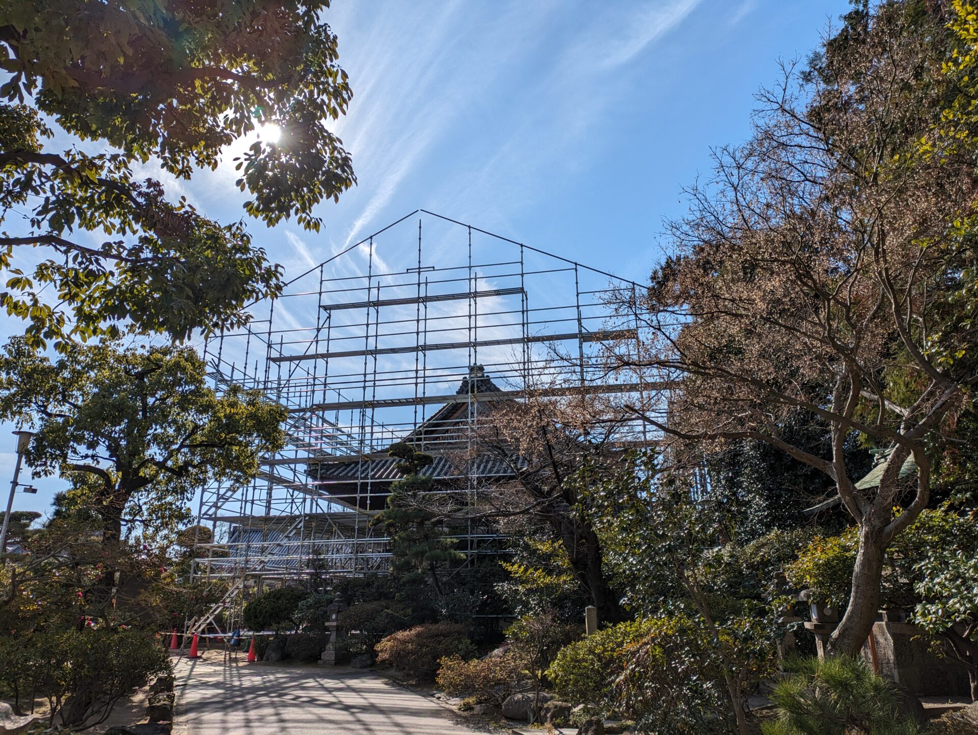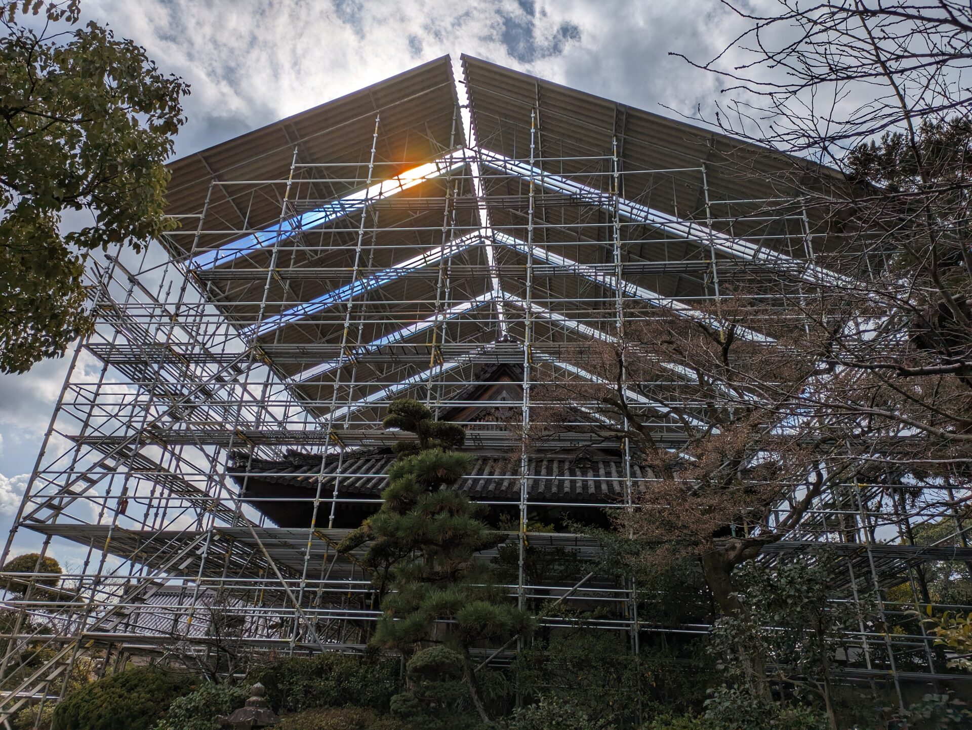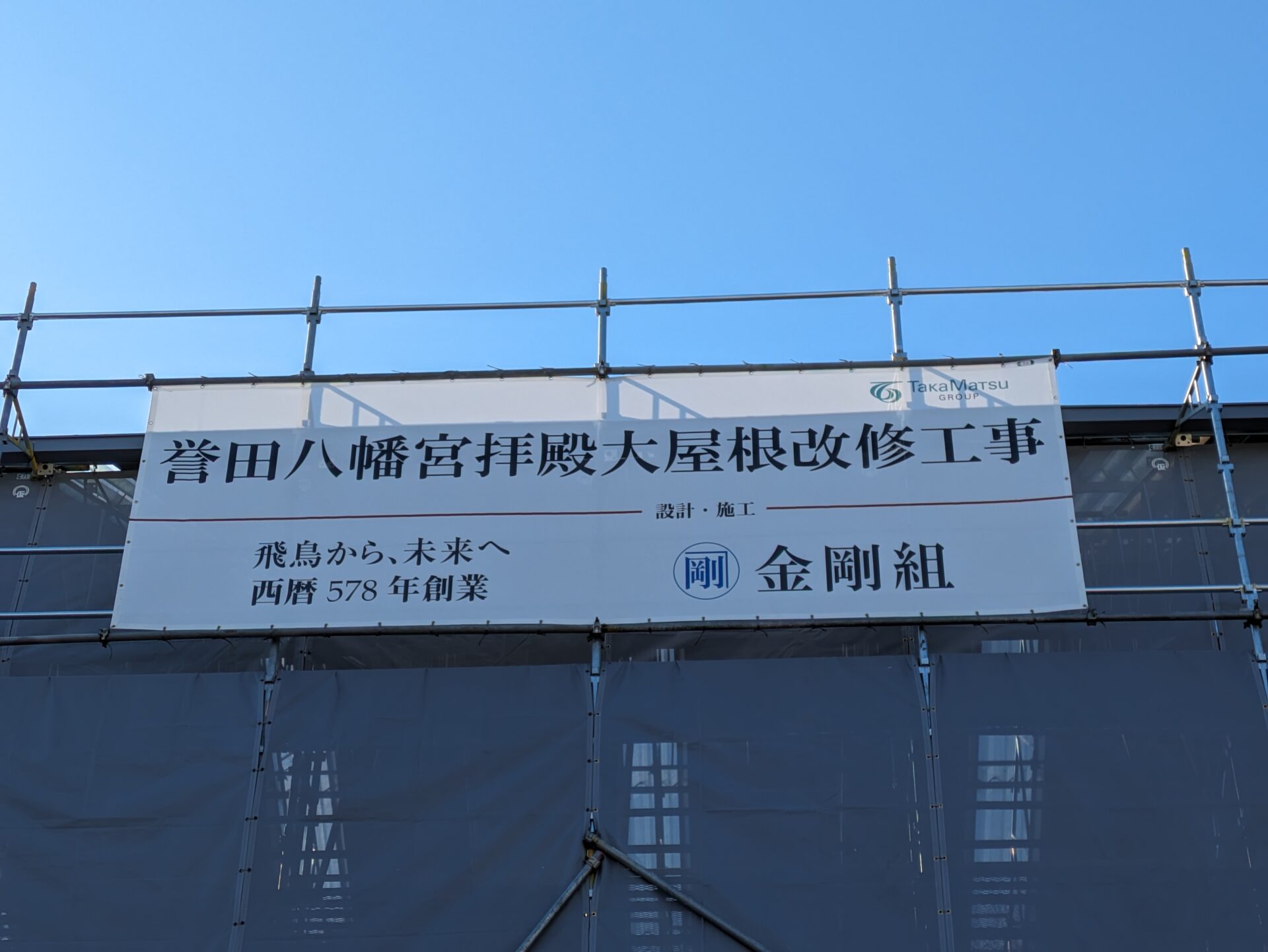 足場の外側が完成いたしました。完成するまでに、大体1か月ぐらいかかりました。