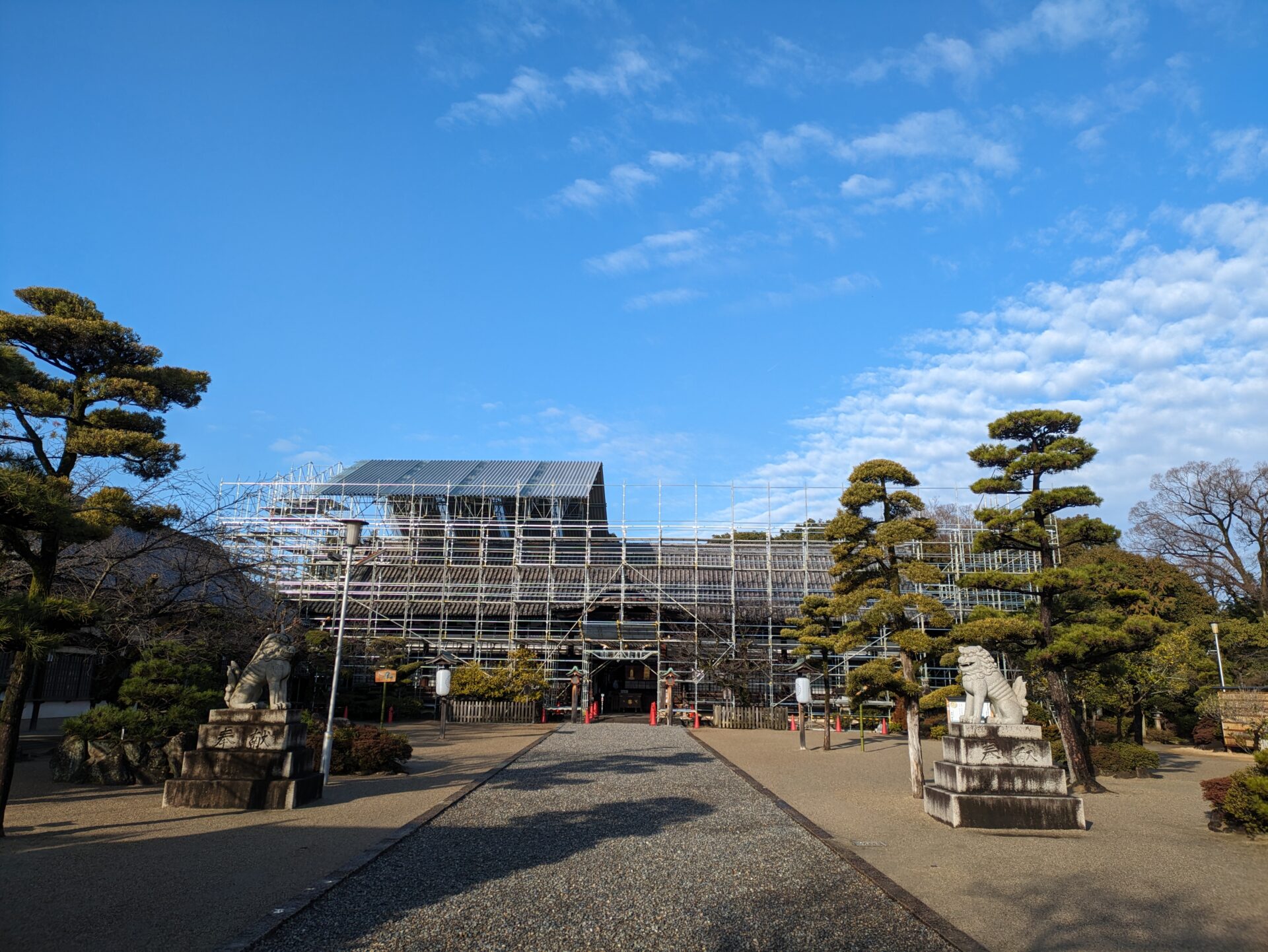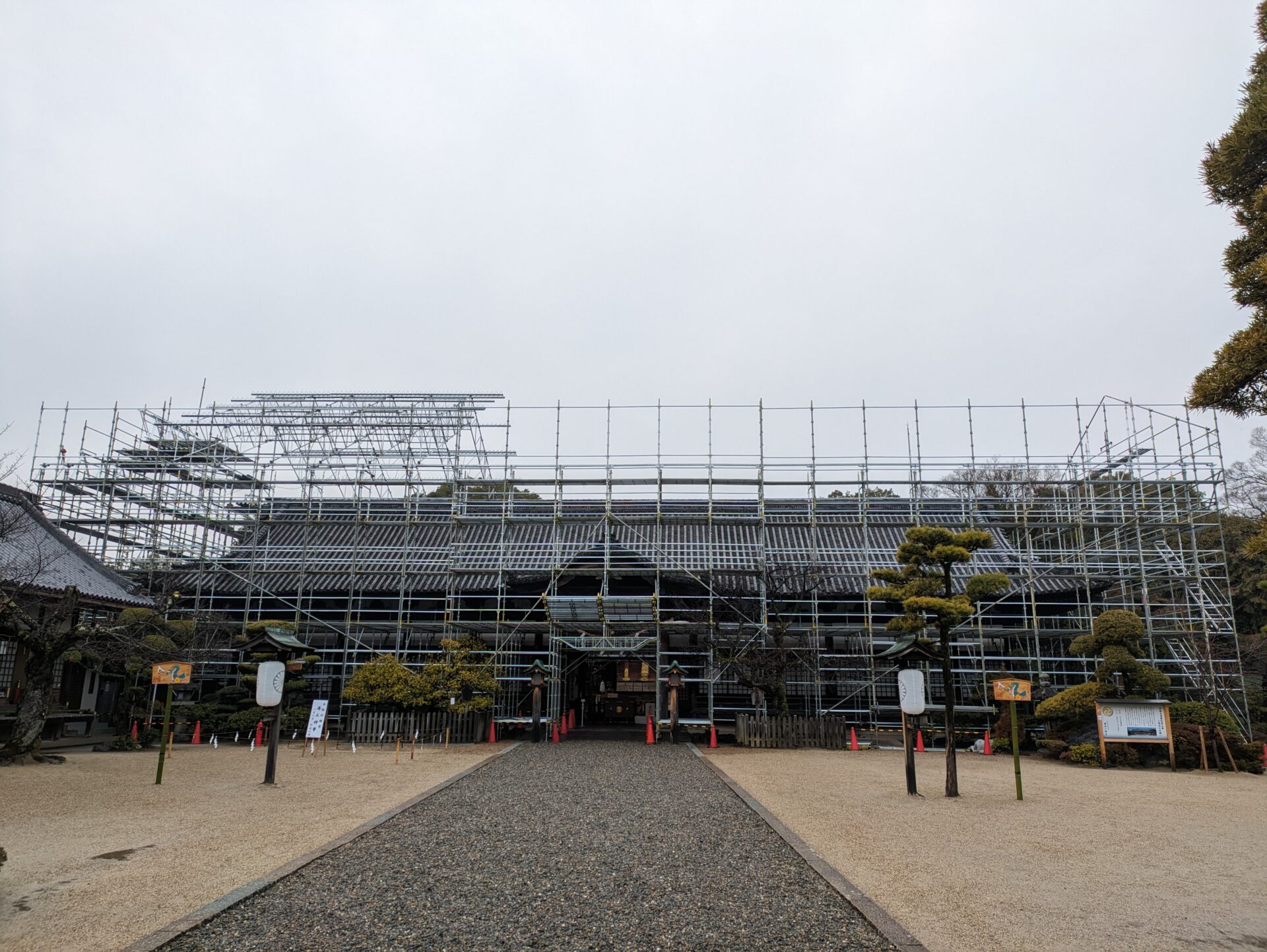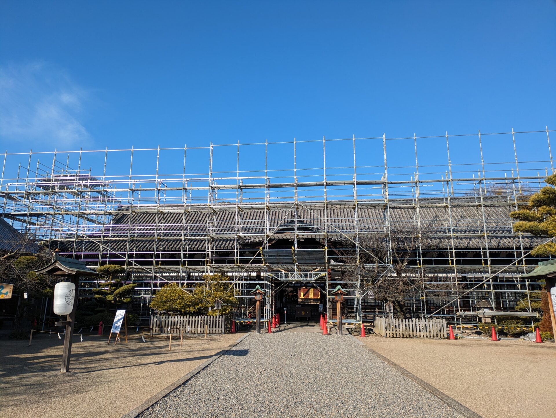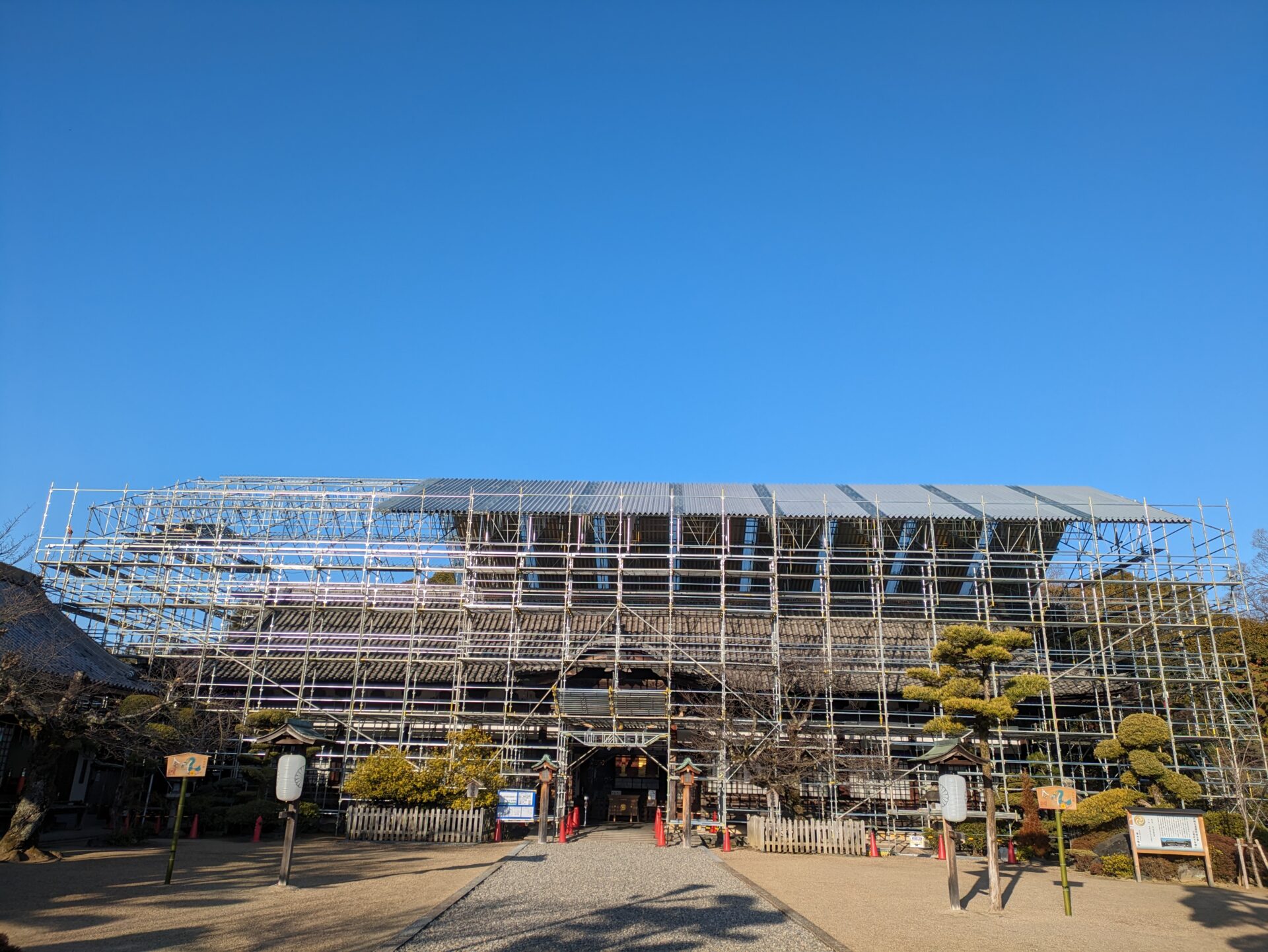 足場の外側が完成いたしました。完成するまでに、大体1か月ぐらいかかりました。