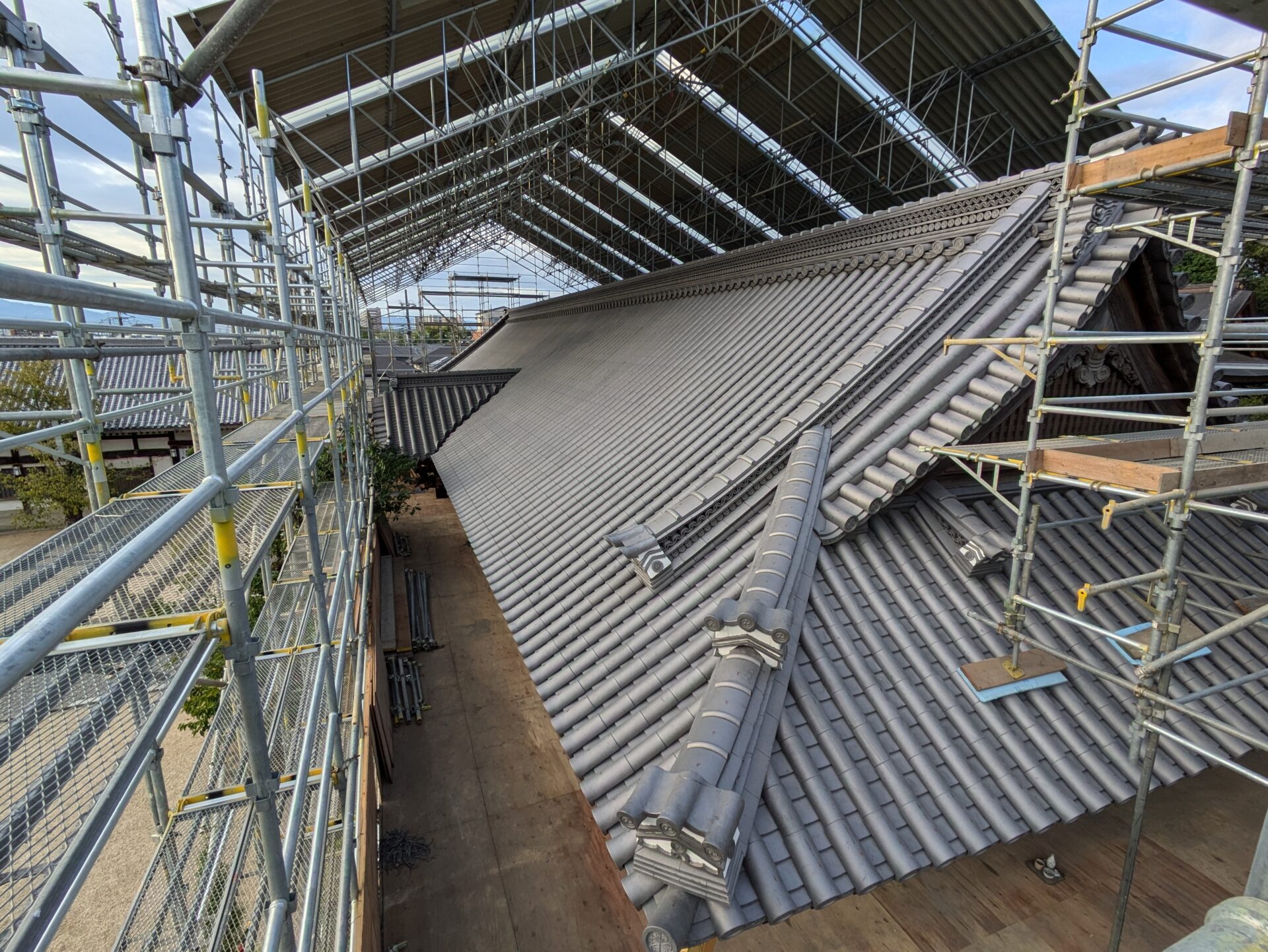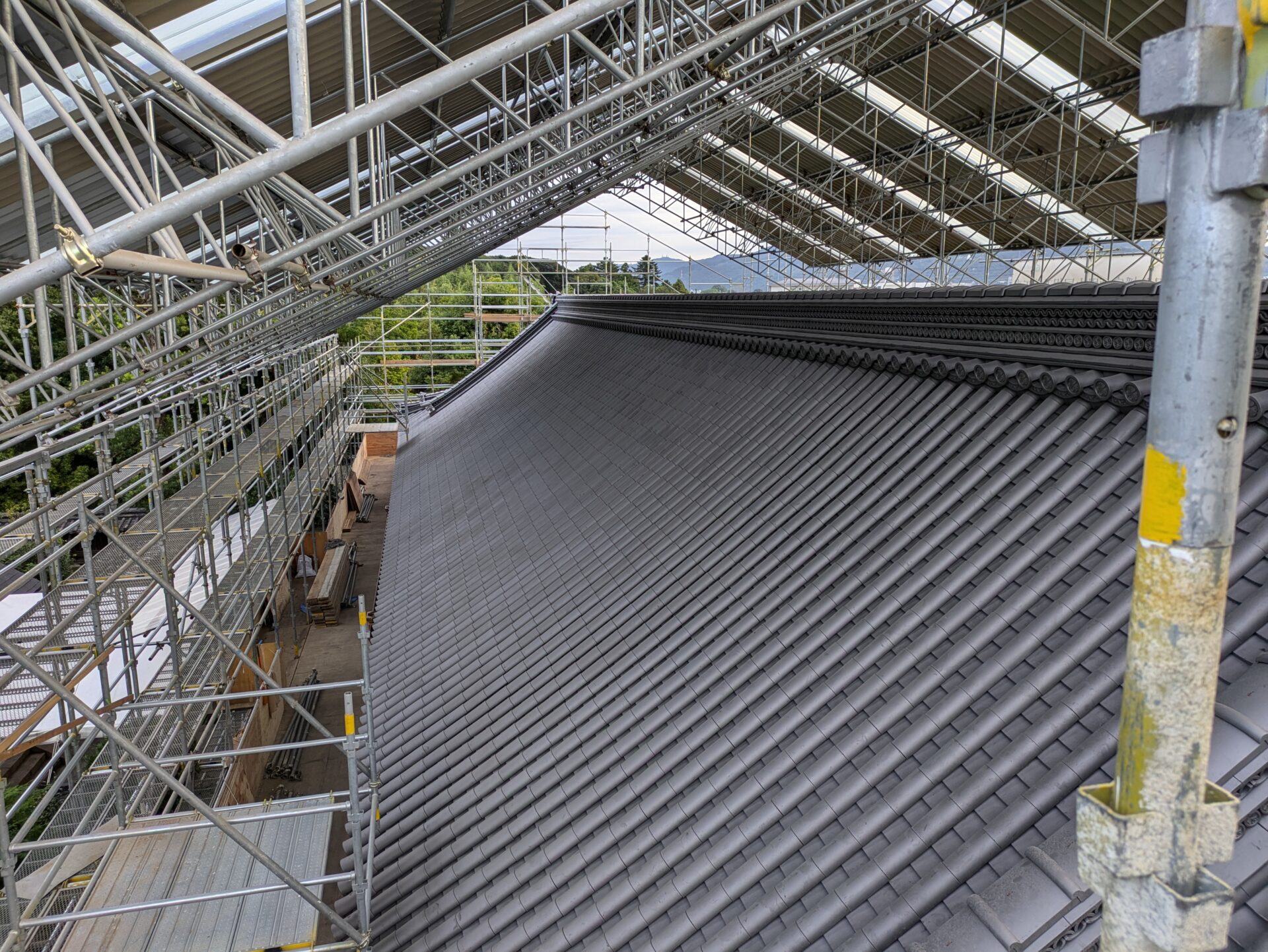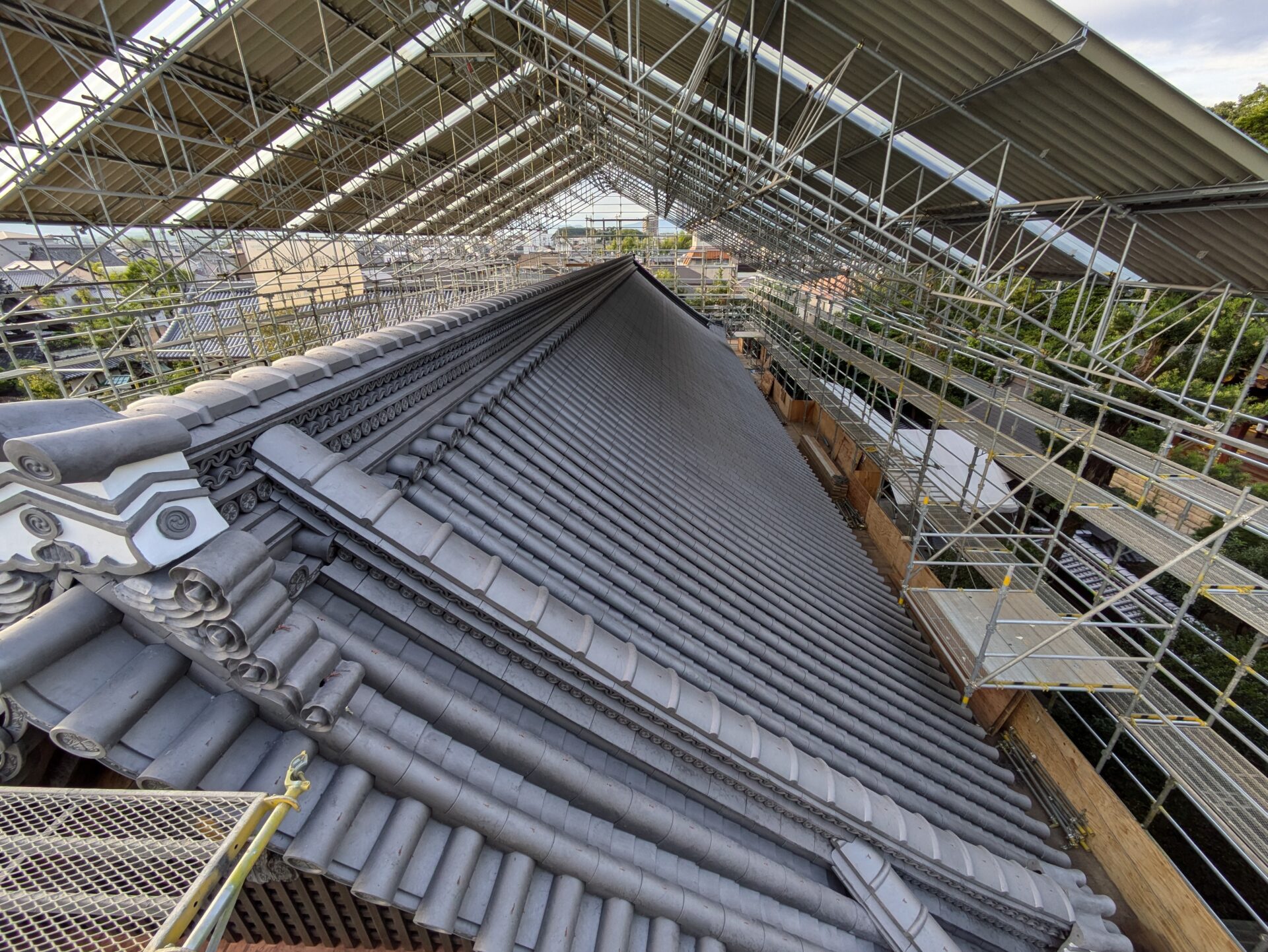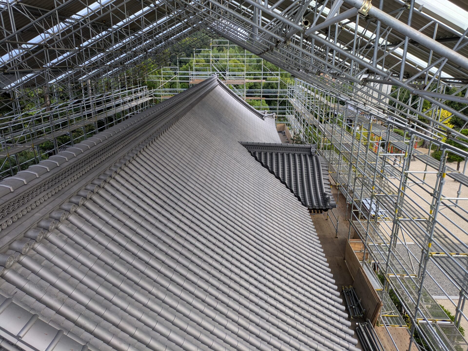 新しい雨どいの設置も完了していました。以前は、土葺の土が流れ込んで詰まってしまっていましたが、今回は、土を葺かない引っかけ葺のため、しっかりと雨どいとして機能してくれます。
