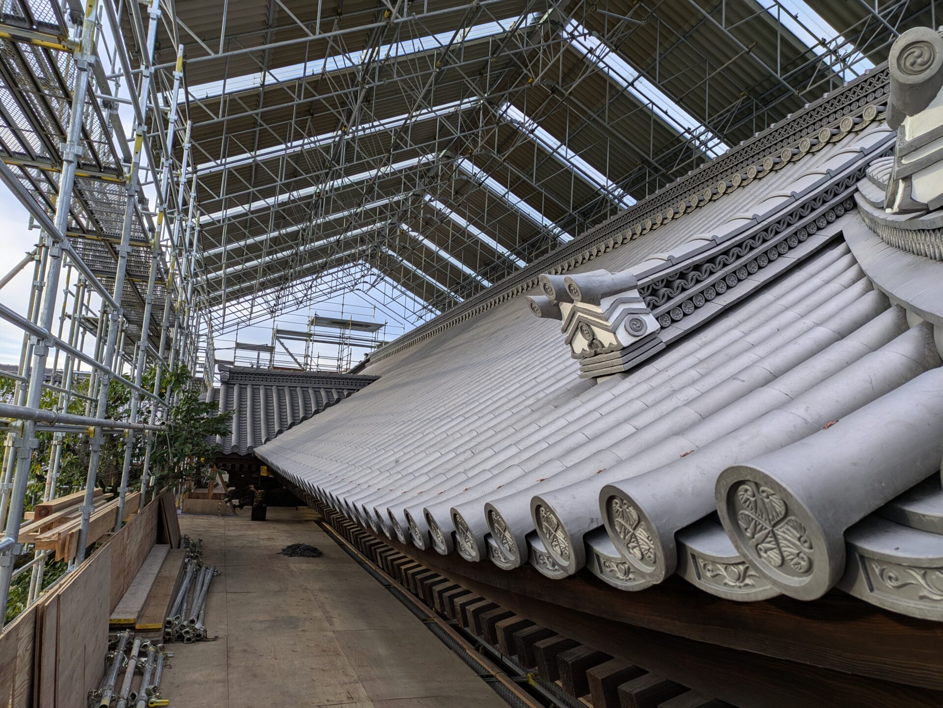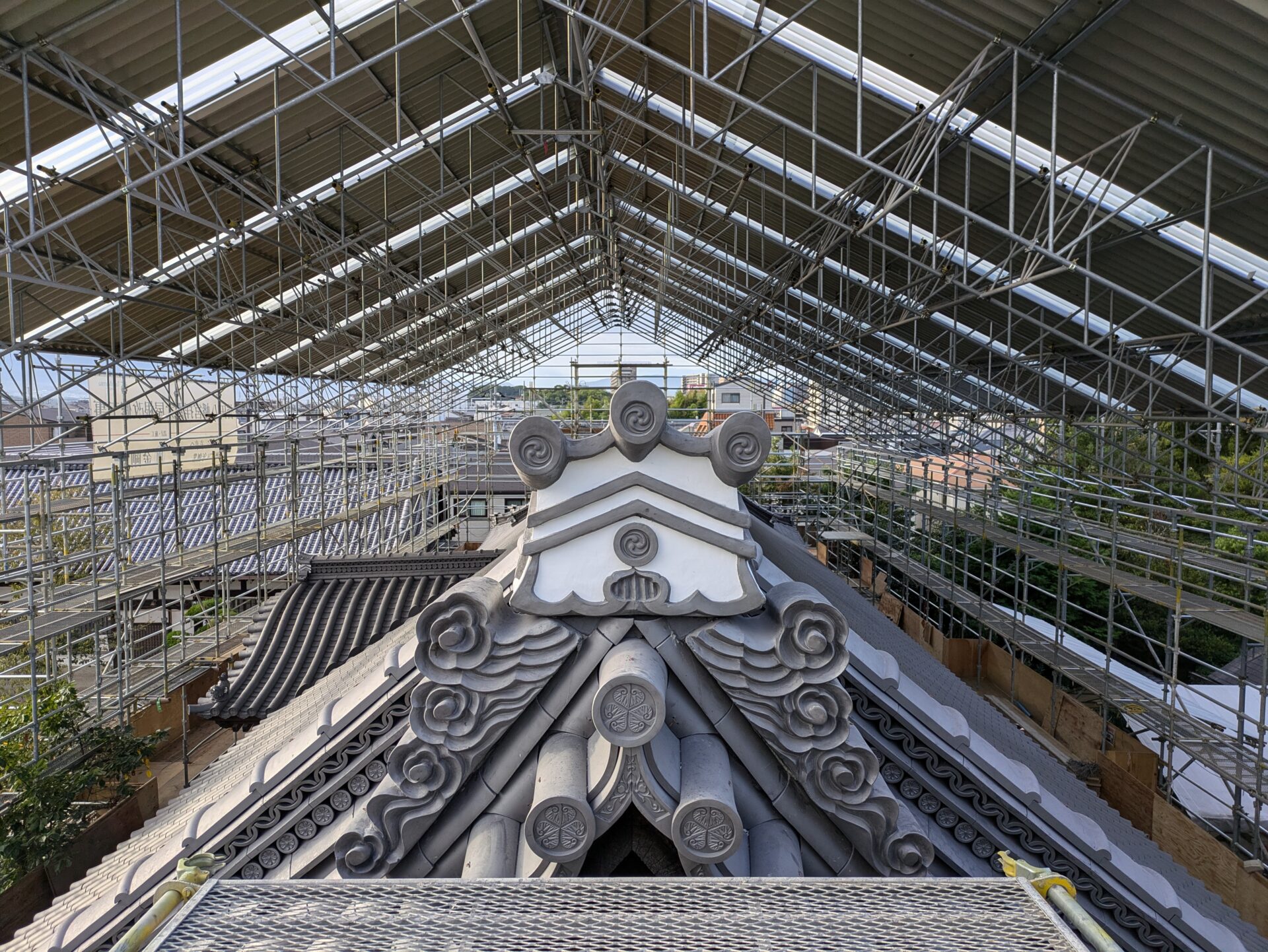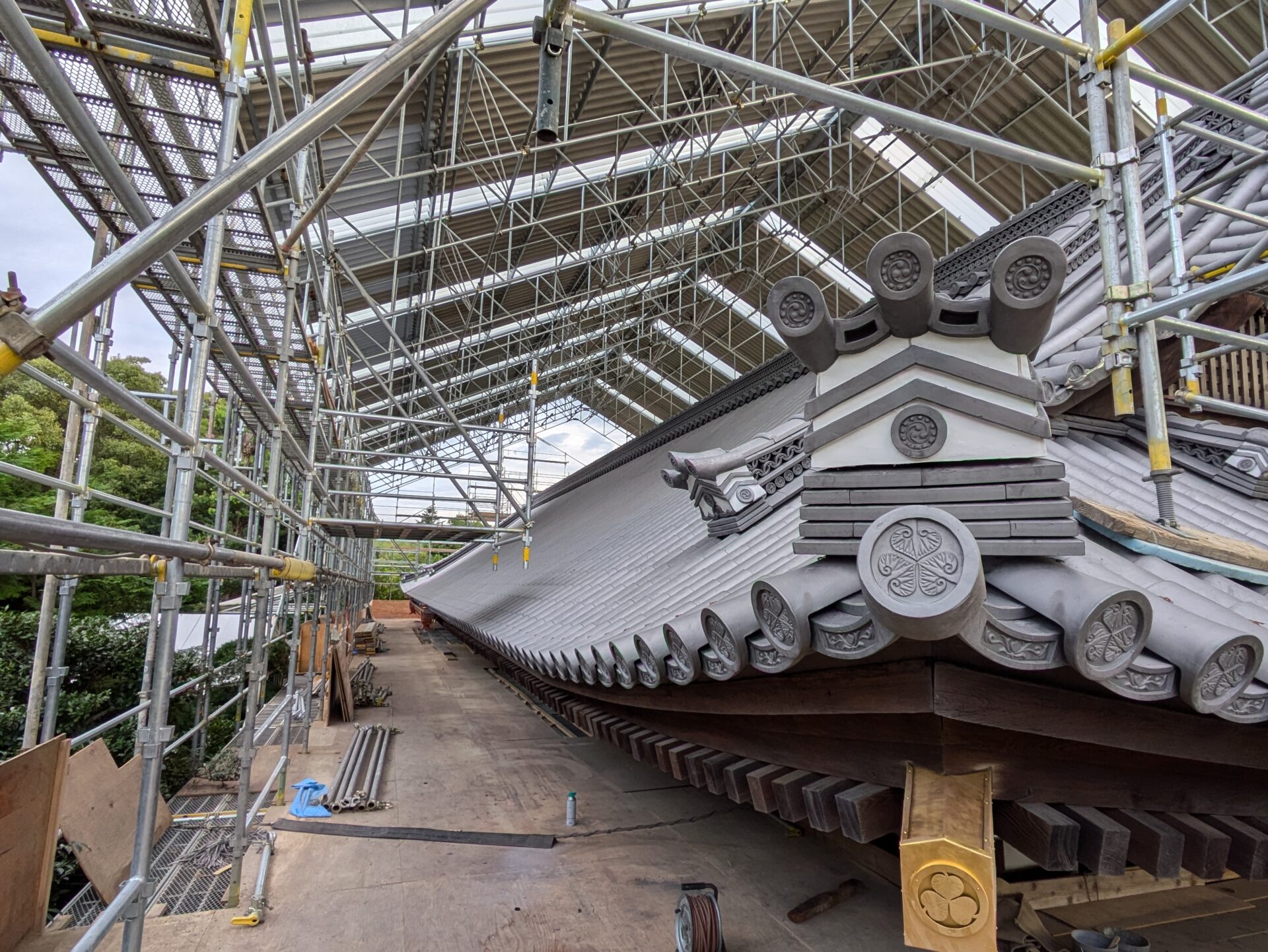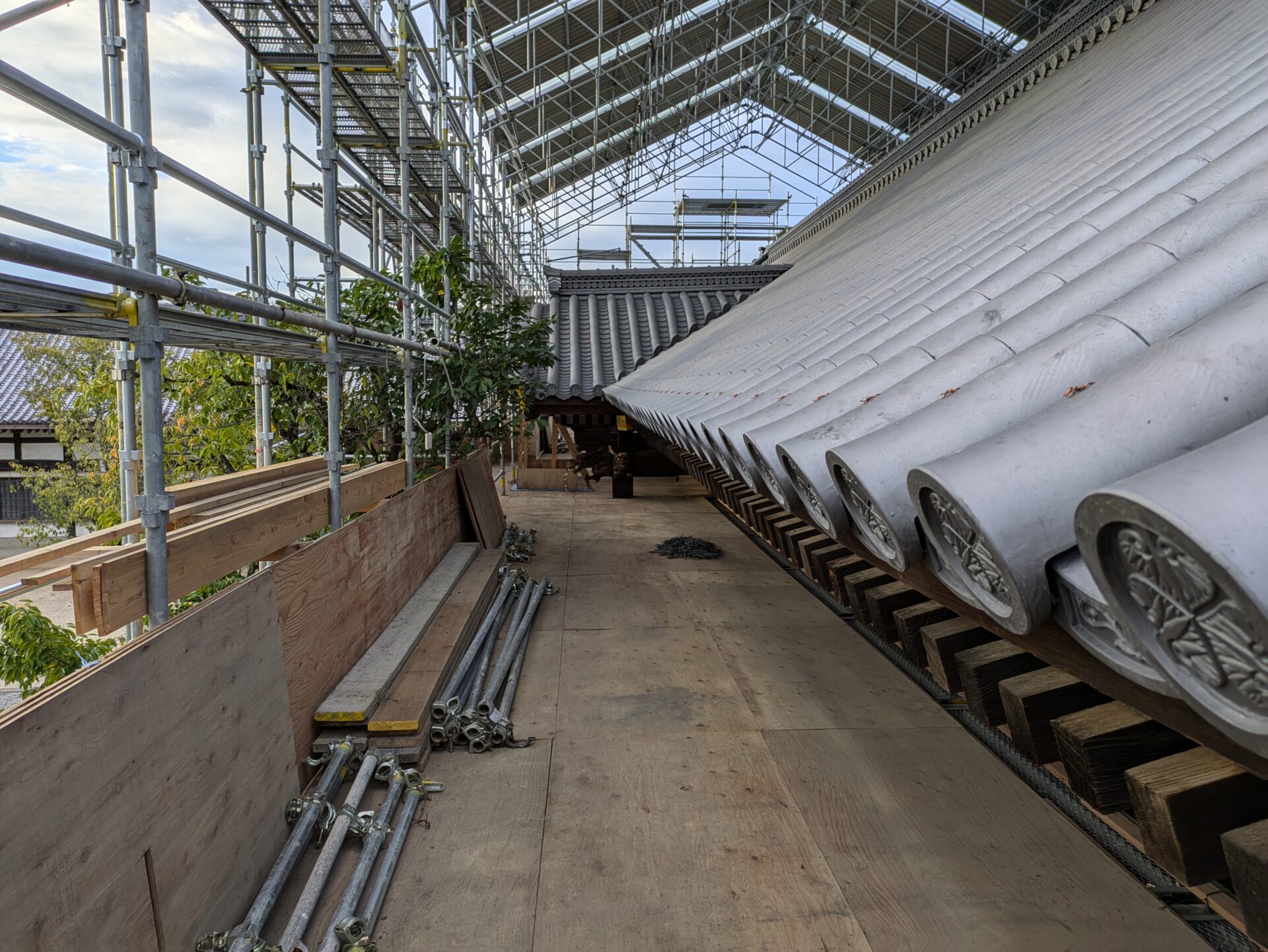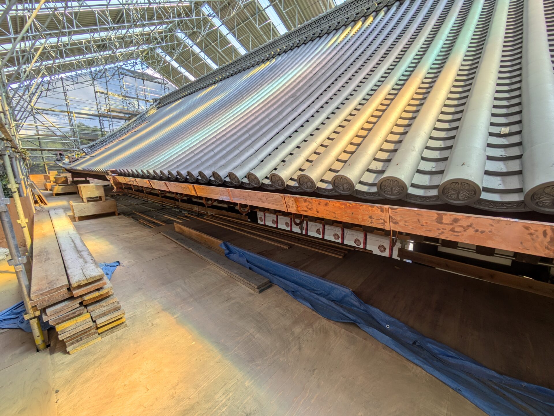 新しい雨どいの設置も完了していました。以前は、土葺の土が流れ込んで詰まってしまっていましたが、今回は、土を葺かない引っかけ葺のため、しっかりと雨どいとして機能してくれます。