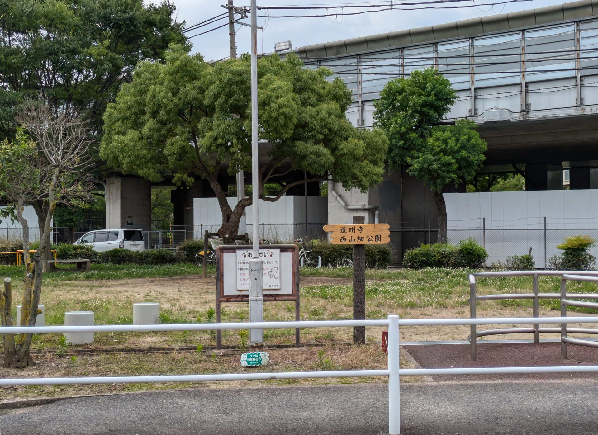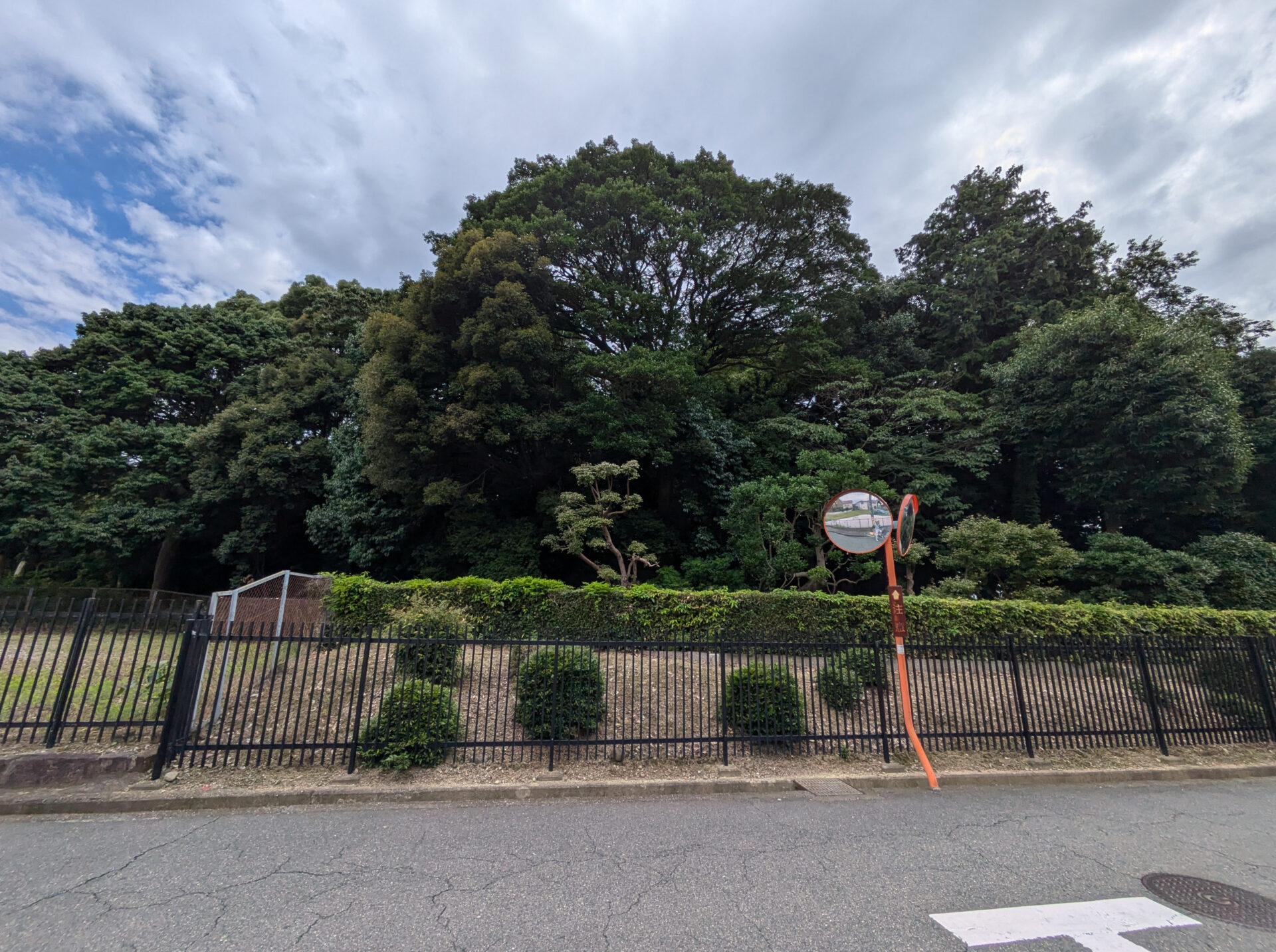 一つ目の信号が見えましたら、その信号を左折いただき直進いたします。公園の前を通ってまっすぐに進んでいきますと左に宮内庁陵墓管区の事務所が見えましたら、応神天皇陵前に到着です。