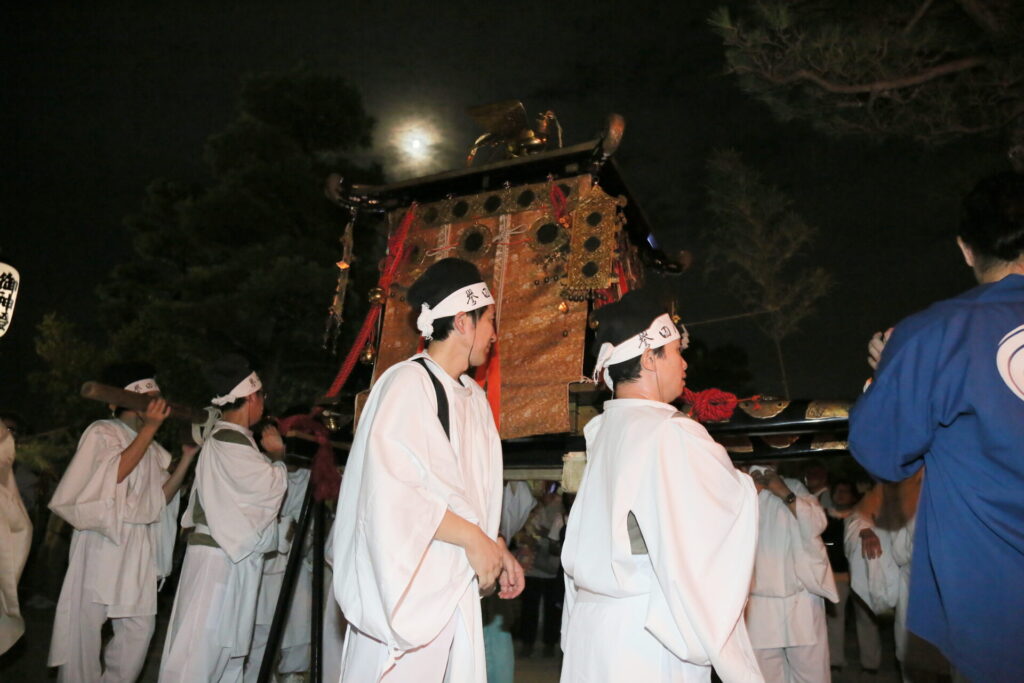 現在、毎年9月15日午後8時より行っている秋のお渡りの神事のお神輿の担ぎ手・神宝奉仕者(神輿の前に行列を作り神宝をお持ちいただける方)を募集しております。